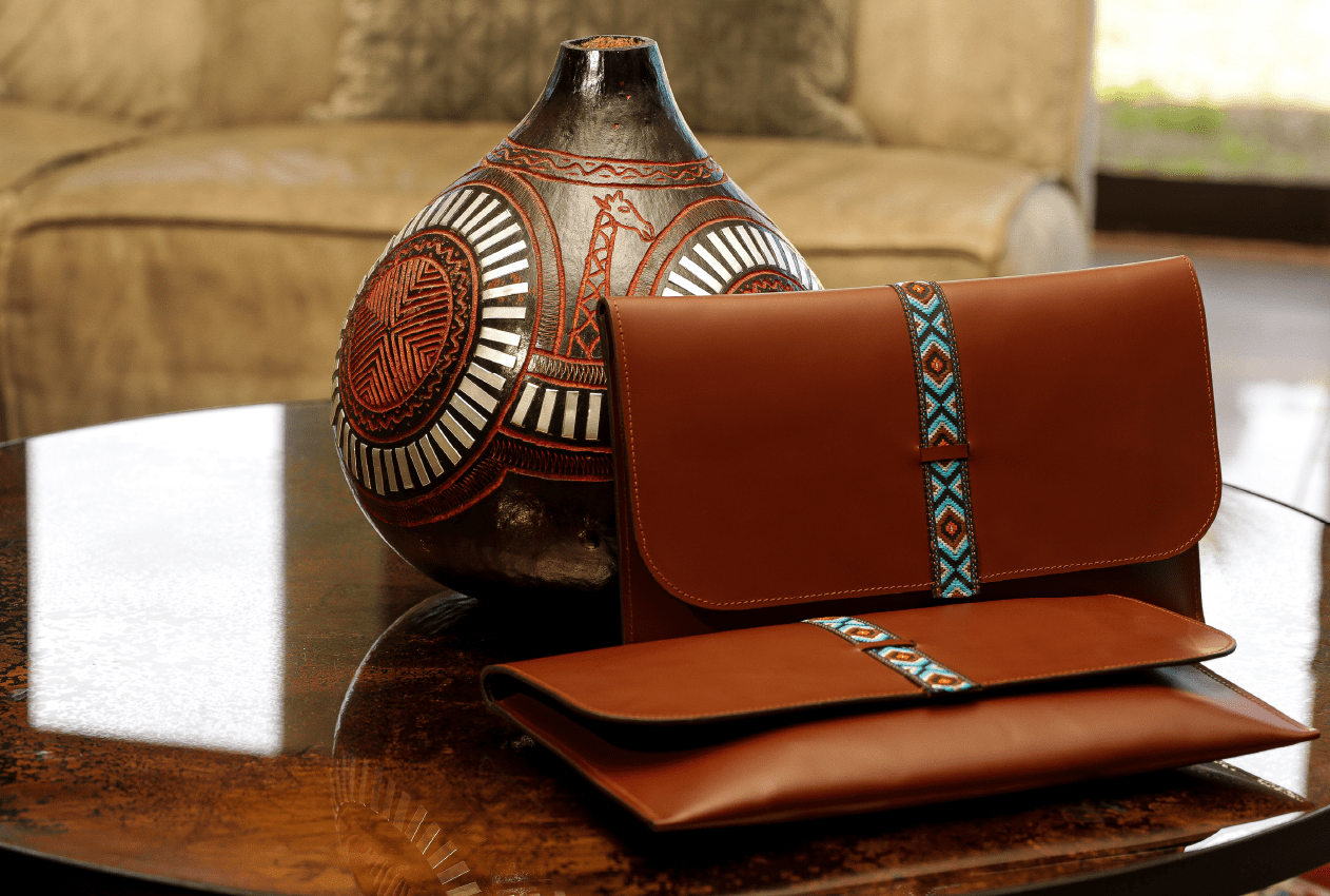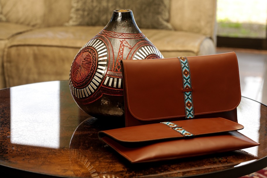 African Print Leather Clutch